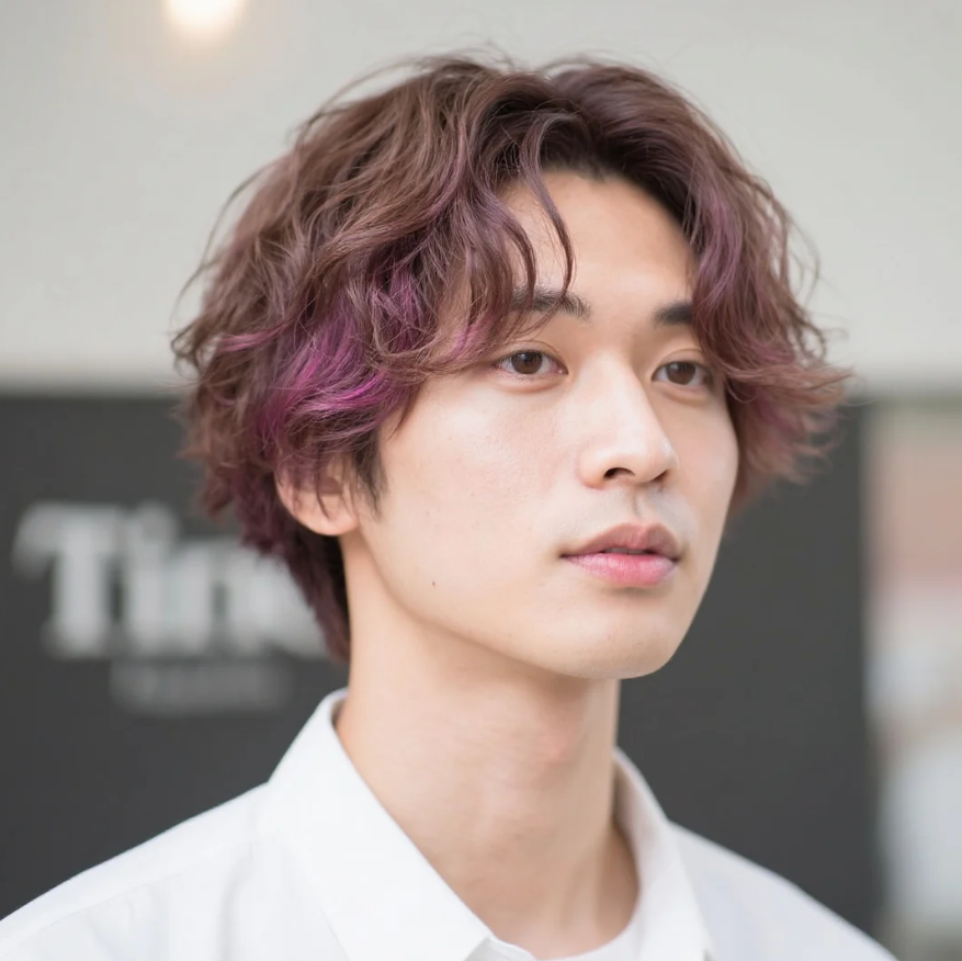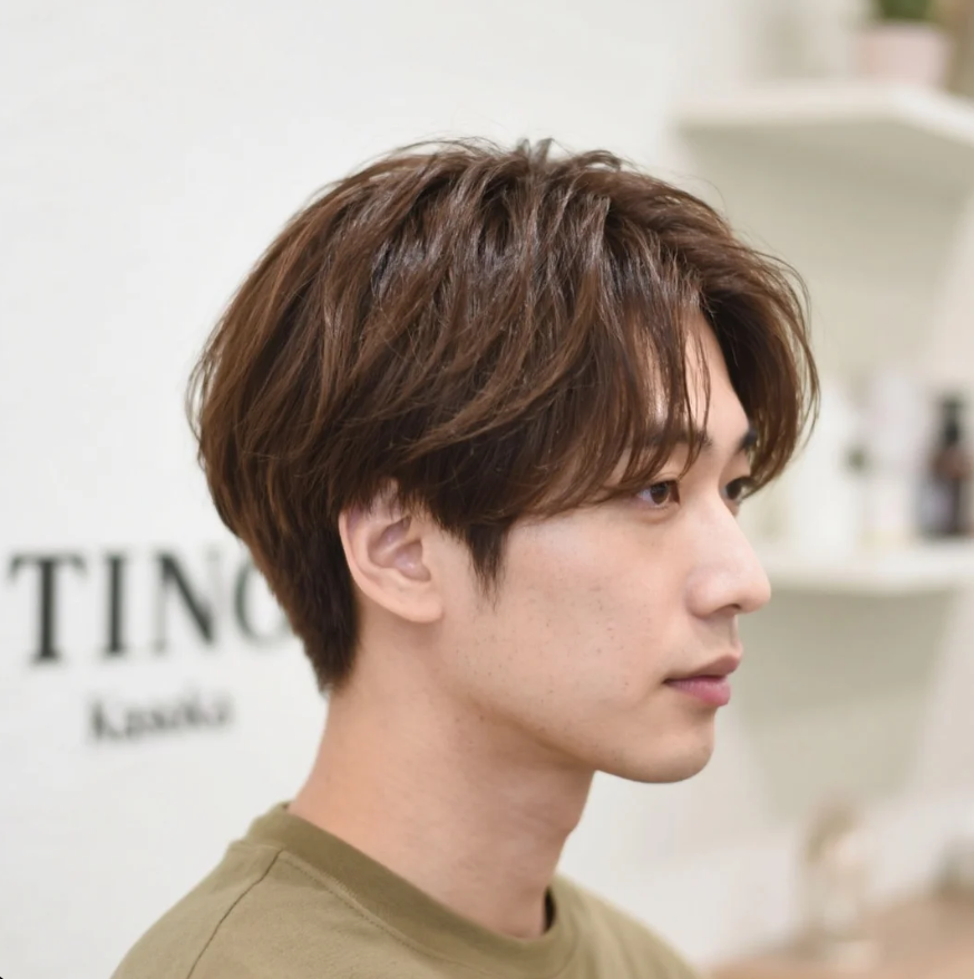 内側にベージュを入れ、トップを軽く。ワックスでラフに。