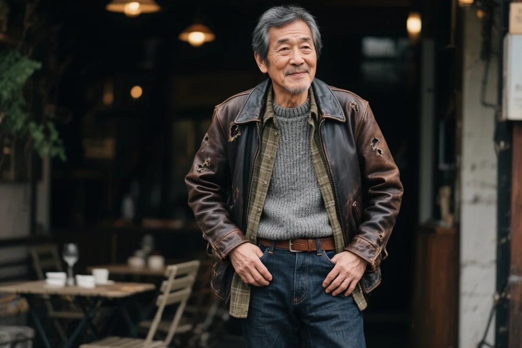50代向けにアレンジするなら、過度なディテールは避け、クラシックなレザーの質感を活かした上品グランジが理想です。
