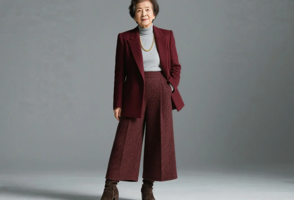 トレンドは、クラシック回帰とモダンな融合がキーワード。60代の女性に特におすすめなのは、ゆったりとしたシルエットで体型をカバーしつつ、上品さと温かみを兼ね備えたスタイルです。落ち着いたバーガンディやグレーなどのカラーパレットが主流で、レイヤードや質感の良い素材が活躍します。
