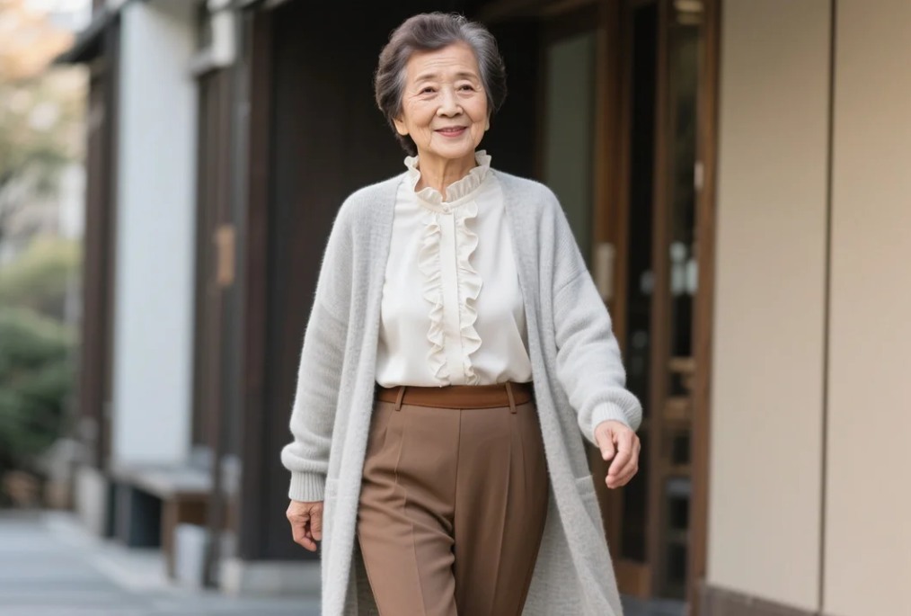 60代女性向けには、体型カバーと動きやすさを重視した「上品で実用的なレイヤードスタイル」が主流。